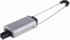 Корпус зажима изготовлен из коррозионностойкого экструдированного алюминиевого сплава, тросик из нержавеющей стали с шаровыми креплениями на обоих концах для удобства надежной фиксации. Внутренняя часть и саморегулирующиеся клинья из армированного диэлектрического пластика, устойчивого к ультрафиолетовому излучению. Не требуется инструмент для монтажа.