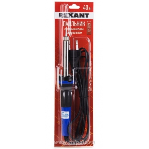 Паяльник с керамическим нагревателем, долговечное жало 40 Вт REXANT предназначен для ручного монтажа радиоэлементов. ...Паяльник выполнен с керамическим нагревательным элементом, поэтому нагревается быстрее, чем нихромовый и при бережном отношении прослужит много лет. Долговечное жало паяльника состоит из медного сердечника, покрытого слоем электролитически осажденного железа. Рабочая часть жала электрохимически покрыта слоем олова (что обеспечивает облуживаемость), а остальная поверхность — хромирована.