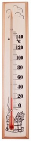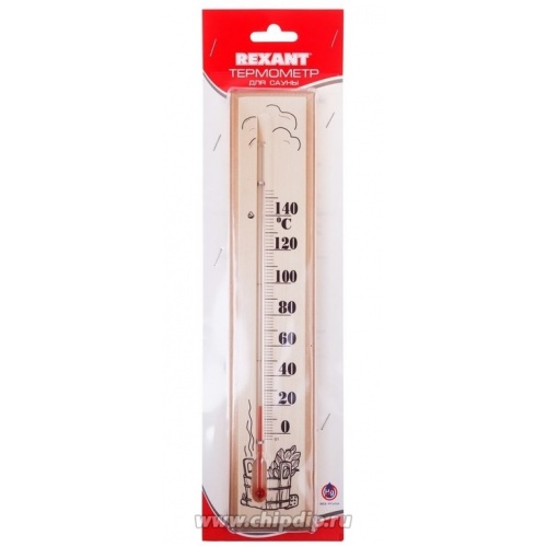 Термометр для сауны REXANT 60х300 мм с диапазоном измерения 0...+140 °С. Для изготовления используется липа, что позволяет применять его как в сухих, так и влажных паровых саунах и банях.
