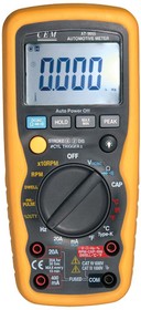 U пост./перем. 600В, погр. 0.8%, I пост./перем. 20A, погр. 2.5%, измерение сопр. 40МОм, ёмкости 40мФ, Частота: 40мГц, ЖК-дисплей 2000 отсчетов, термопара тип К, измерение частоты вращения, бесконтактное измерение температуры