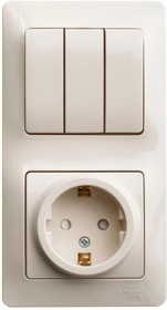 Описание Блок комбинированный GLOSSA розетка защ. шторки с заземл. + выкл. 3-кл. беж. SchE GSL000278