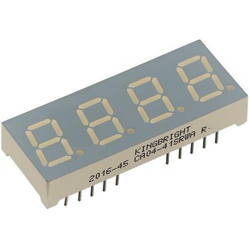 Тип дисплея 4 цифры, по 7 сегментов, Высота символов 10.16 мм, Цвет свечения красный, Схема включения общий анод, Типовая яркость 18 мкд