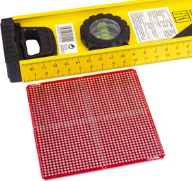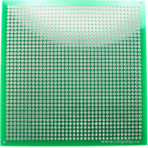 Макетная плата предназначена для удобного прототипирования с ДИП компонентами. Шаг - 2,54 мм. Контактные площадки покрыты паяльной пастой ПОС-63, все отверстия металлизированы. Количество контактных площадок(отверстий) – 1369 (37x37). Габаритные размеры 100х100 толщина текстолита 1,5 мм. Плата покрыта маской красного цвета.
