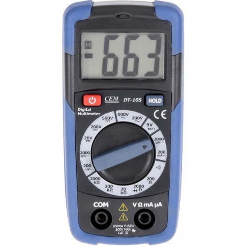Особенности DT-105: Степень защиты CAT III 600V Двойной корпус Бесконтактный детектор напряжения Удержание показани...