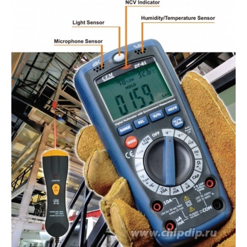 Особенности мультиметра DT-61: ∙ 6 в 1 мультиметр с функциями измерения окружающей среды: шумомер, люксметр, измери...