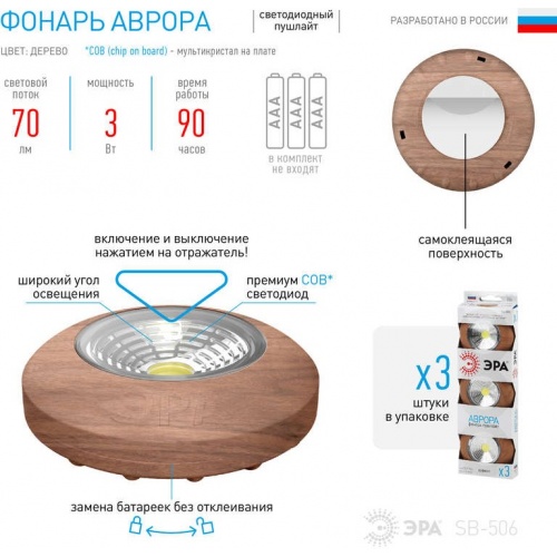 Описание Фонарь SB-506 NEW пушлайт Аврора 3 шт