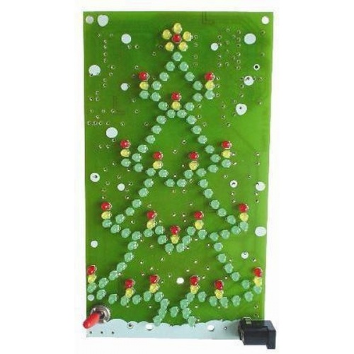 Эффект света с 134 светодиодами, вспыхивающими беспорядочно в форме рождественской елки. Разработан с сетевым выключа...Эффект света с 134 светодиодами, вспыхивающими беспорядочно в форме рождественской елки. Разработан с сетевым выключателем. Конструкция в продаже в собранном виде и готова к эксплуатации. Работает от 9 В батареи 6LR61 или 12 В от прикуривателя в автомобиле.