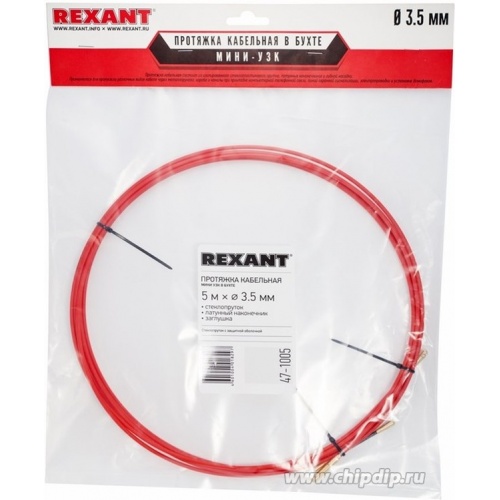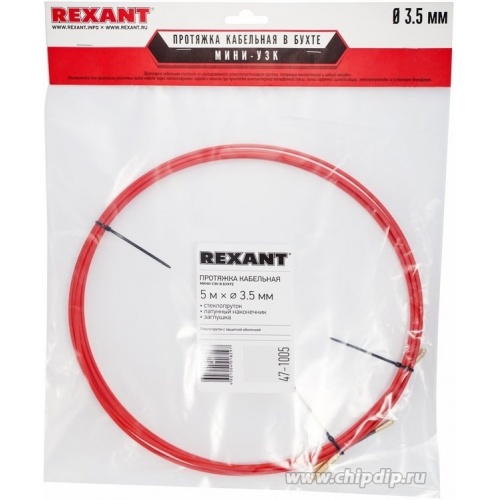 Описание Протяжка кабельная (мини УЗК в бухте) 5м стеклопруток d3.5мм красн. Rexant 47-1005
