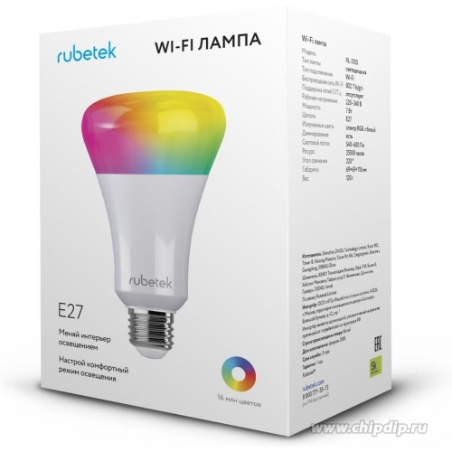 Wi-Fi лампа rubetek меняет представление об освещении в доме: управляйте теплыми и холодными оттенками цвета, меняйте...Wi-Fi лампа rubetek меняет представление об освещении в доме: управляйте теплыми и холодными оттенками цвета, меняйте яркость, задавайте любой цвет и устанавливайте режимы подсветки в помещении буквально одним касанием – или даже голосом!