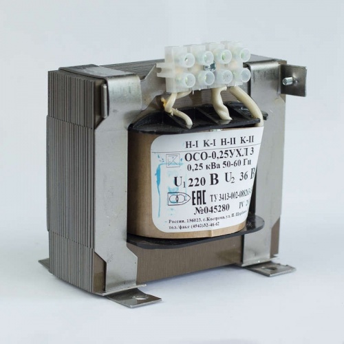 Понижающие трансформаторы ОСО (однофазные) торговой марки Костромское ФГУ ИК-1 предназначены для преобразования переменного напряжения одной величины 380/220В в напряжение другой величины 110; 42;36;24;12В.