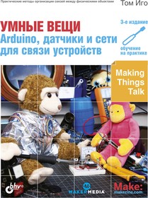 В книге рассмотрен 31 проект на основе микроконтроллерной платы Arduino, в которых показано, как сделать, чтобы электронные устройства могли обмениваться между собой данными и реагировать на команды. Показано, как изменить настройки домашнего кондиционера, «позвонив ему» со своего смартфона; как создавать собственные игровые и видеоконтроллеры, взаимодействующие по сети; как использовать устройства Wi-Fi, Bluetooth, LoRa и инфракрасное излучение для получения информации от датчиков и организации взаимодействия объектов. Рассмотрена работа с четырьмя программными платформами и библиотеками с открытым исходным кодом: Arduino IDE 1.8, Processing, node.js и p5.js. В третьем издании добавлены новые проекты, описано использование в проектах не только Arduino Uno, но и Arduino 101, Arduino MKR1000, ESP32, ESP8266 и Raspberry Pi, а также уделено внимание вопросам безопасности.