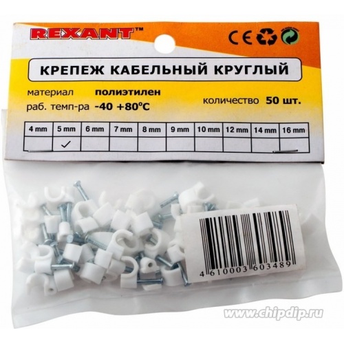 ЭлектротехникаКрепежКрепеж для кабеляВысококачественный круглый крепеж кабеля REXANT представляет собой дугообразную ...ЭлектротехникаКрепежКрепеж для кабеля