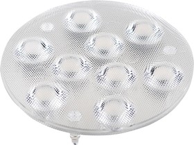 45о блок линз для шести светодиодов 'Emitter'. Поверхность микролинза Френеля. 3 ножки, под запайку. Габариты 95 мм.